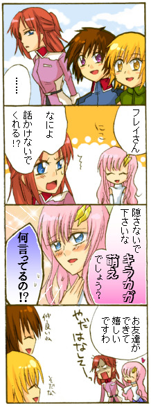 キラカガを見つめるフレイとラクス。